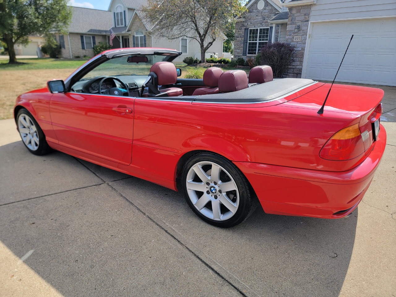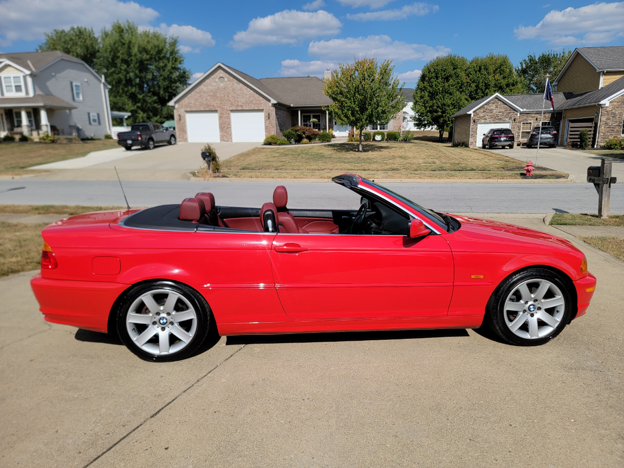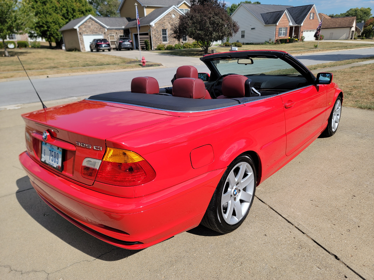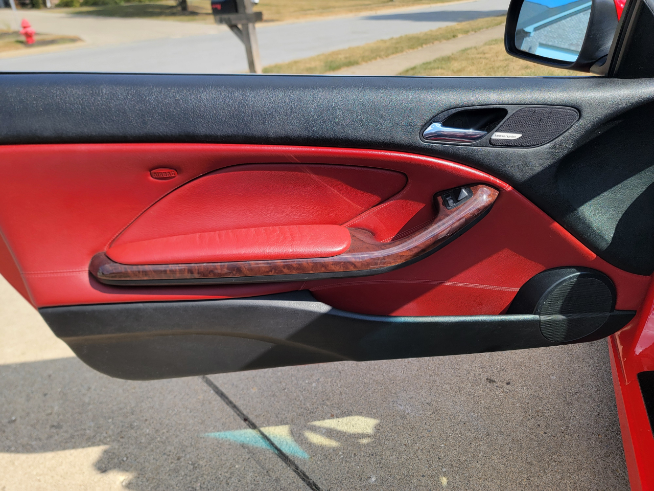 Two owner 2001 BMW 325Ci with only 39K miles. Hellrot Red over Dark Red Leather. Factory Sport Package with a hard to find 5SP manual transmission. Hands free power top. First owner had it for 20 years. Hands free power top. Heated power seats. What a nice, well kept example!