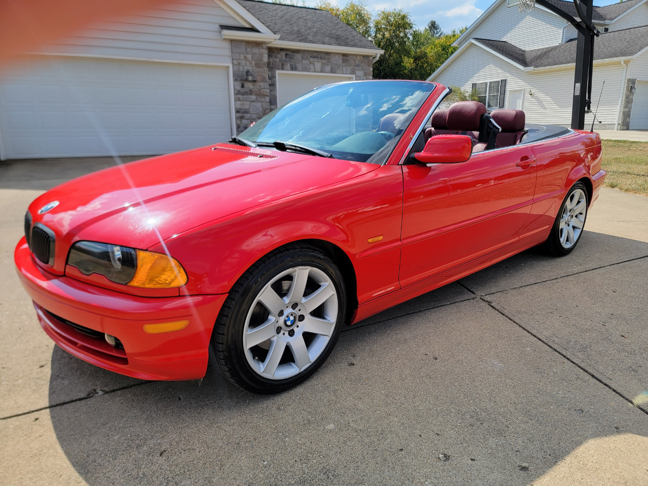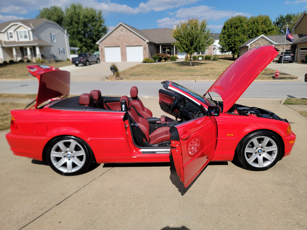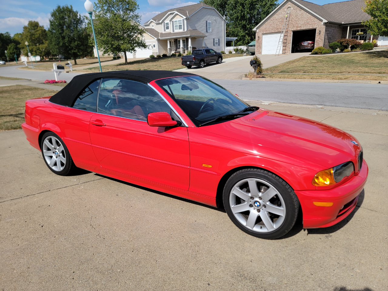 Two owner 2001 BMW 325Ci with only 39K miles. Hellrot Red over Dark Red Leather. Factory Sport Package with a hard to find 5SP manual transmission. Hands free power top. First owner had it for 20 years. Hands free power top. Heated power seats. What a nice, well kept example!