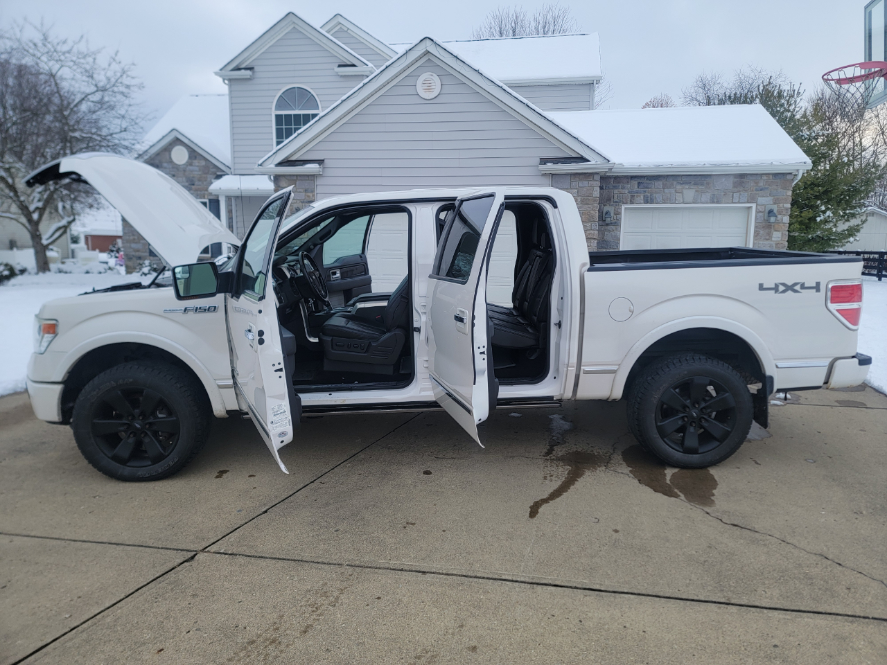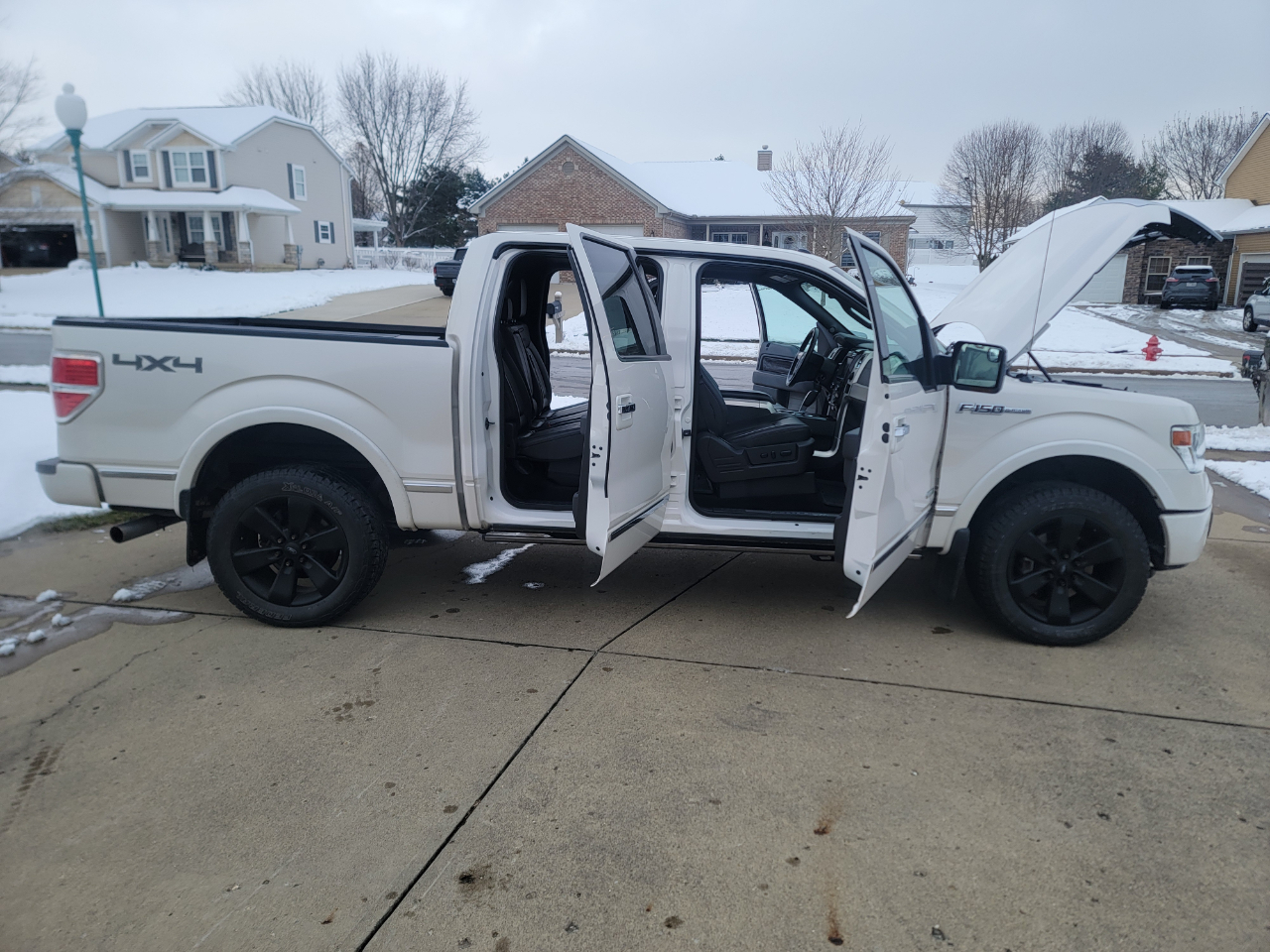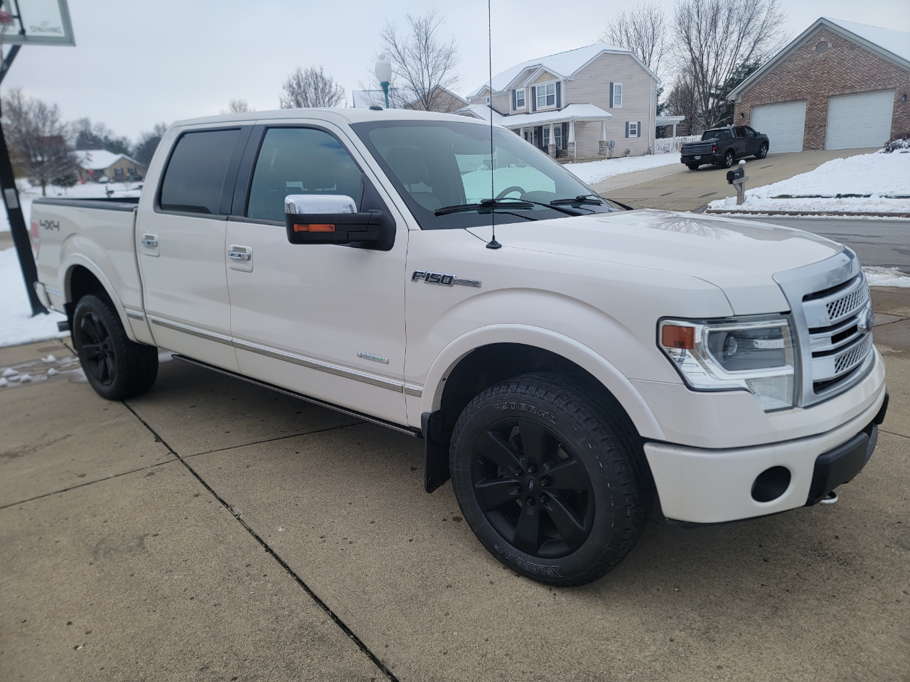 2013 Ford F150 Supercrew Platinum 4X4. White Platinum Metallic Tri-Coat over Black Leather. Clean history. Recent service includes replacing the manifold gaskets and the water pump. Fully loaded with every option. Comes complete with all of the books, manuals, and both sets of keys.