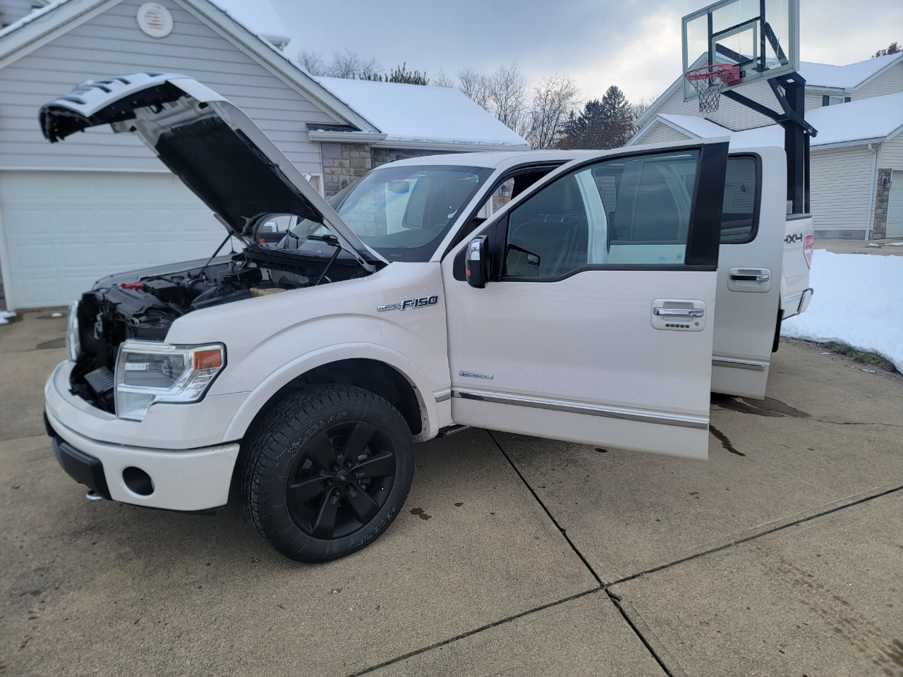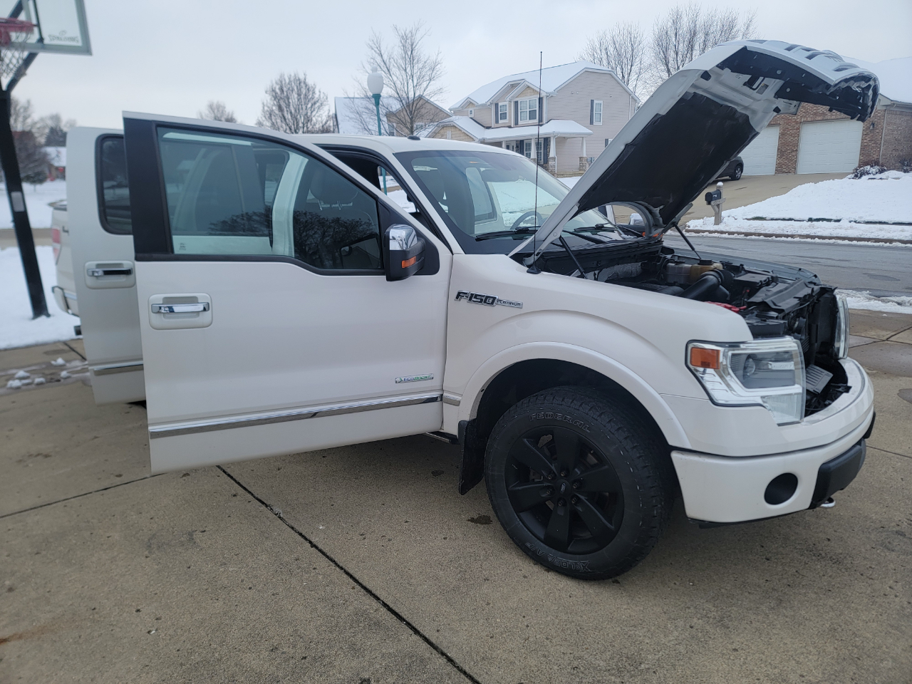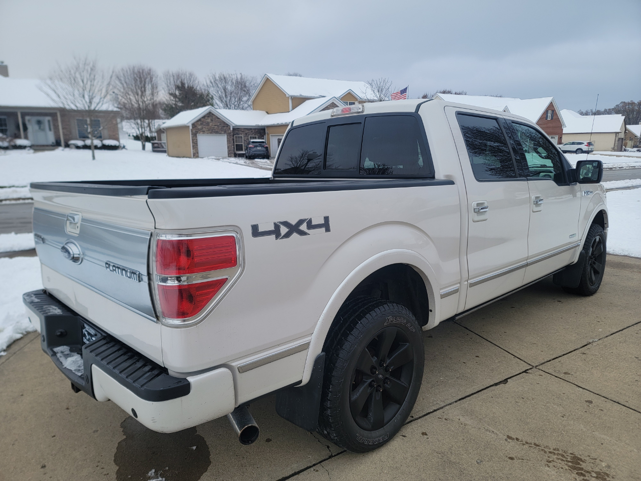 2013 Ford F150 Supercrew Platinum 4X4. White Platinum Metallic Tri-Coat over Black Leather. Clean history. Recent service includes replacing the manifold gaskets and the water pump. Fully loaded with every option. Comes complete with all of the books, manuals, and both sets of keys.